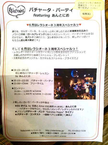 バチャータバンド“エストレ”のLIVE演奏あり。