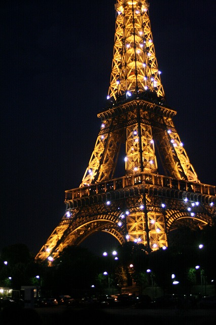 夜のエッフェル塔のイルミネーションは、一時間おきにスパークリングして青白い光に包まれます☆
